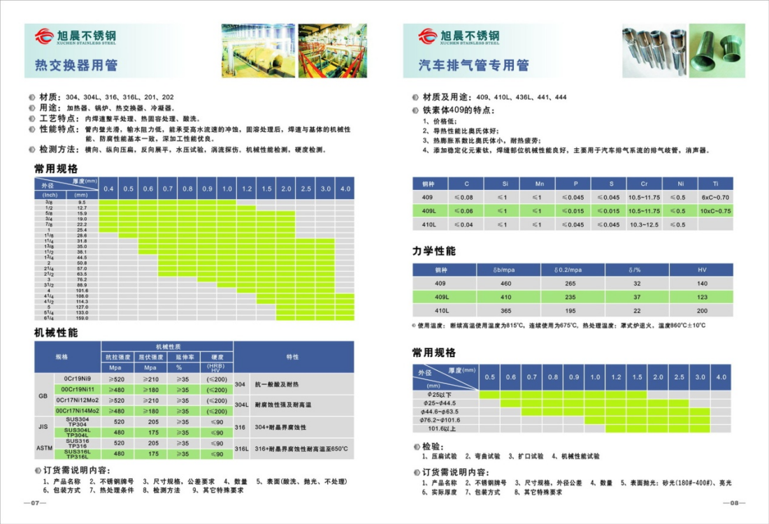 一. 采用符合国际标准的 AISI304 316 202 304L 316L 409L 310S 等日本、韩国、台湾的优质原材料。 生产“旭晨” 牌:制品用管jbo电竞网官网管、装饰用管jbo电竞网官网管、汽车排气消声器用管、汽车排气用管jbo电竞网官网管、流体输送用管jbo电竞网官网管、U型热交换器用管、热交换器用管jbo电竞网官网管、食品卫生用管jbo电竞网官网管,等达到国际先进水平。
